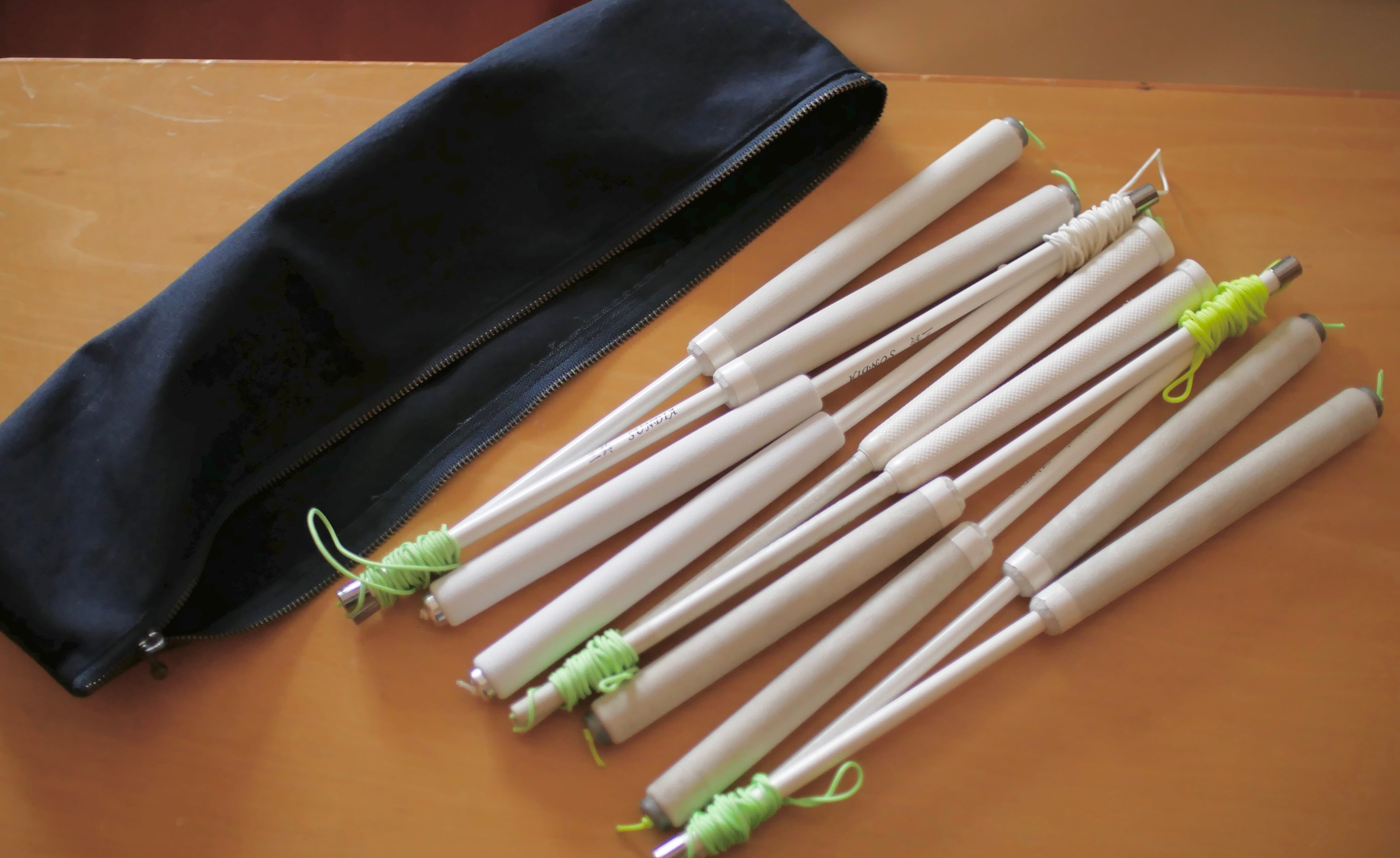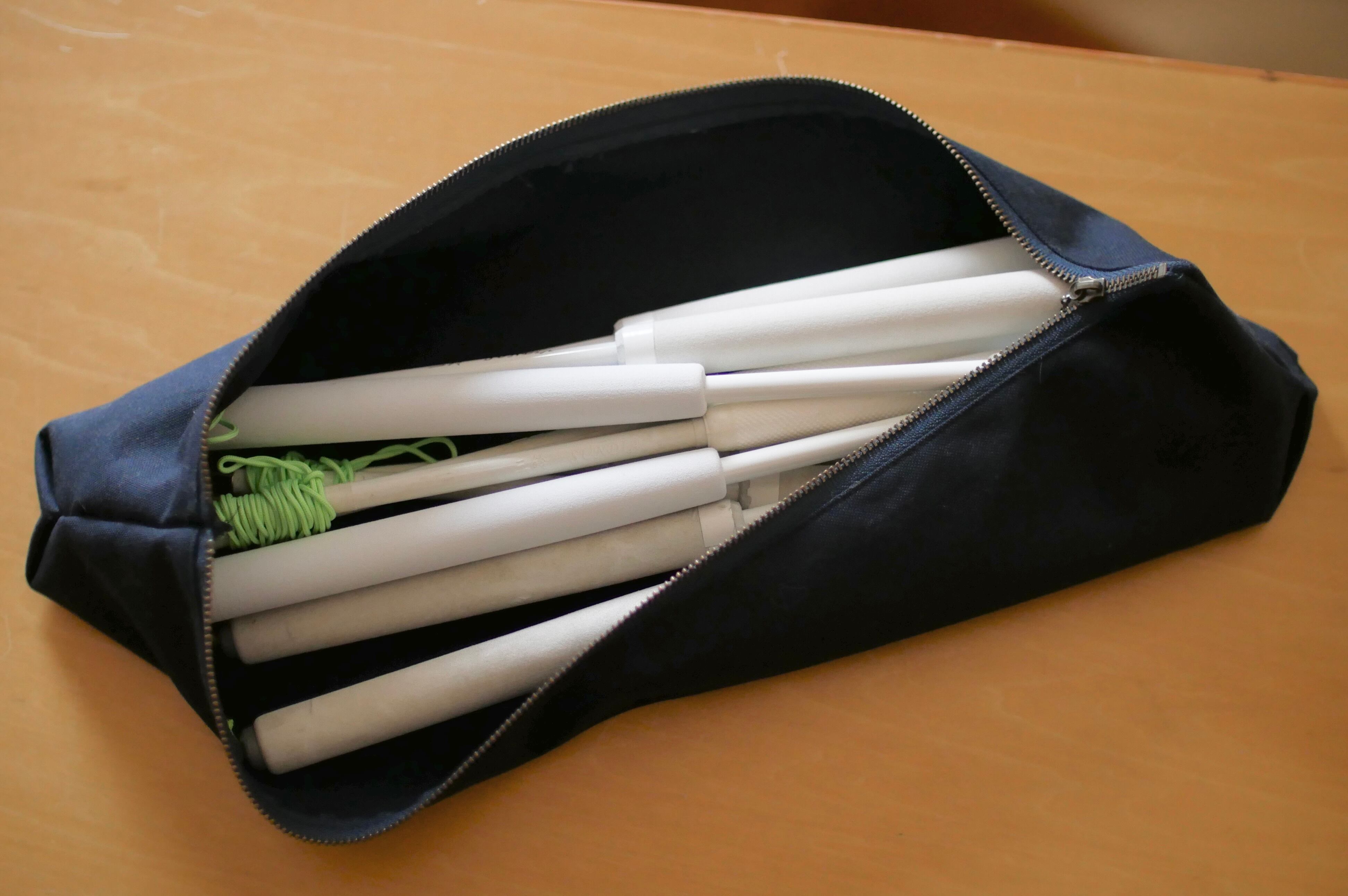 ファスナーで大きく開き、取り出しやすい設計です。35cmまでのスティックに対応しています。32cmのスティックを最大5セット収納できる容量です。